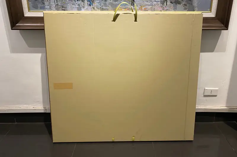 Đặt tranh theo chiều dọc: Luôn dựng đứng, đặt cạnh dưới xuống đáy thùng. Tránh đặt nằm phẳng vì dễ bị đè lực lên.